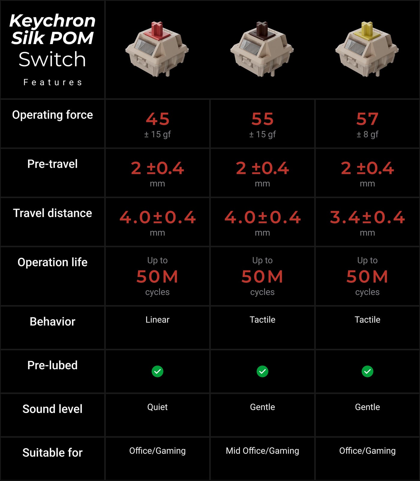 - Keychron Silk POM Switches.